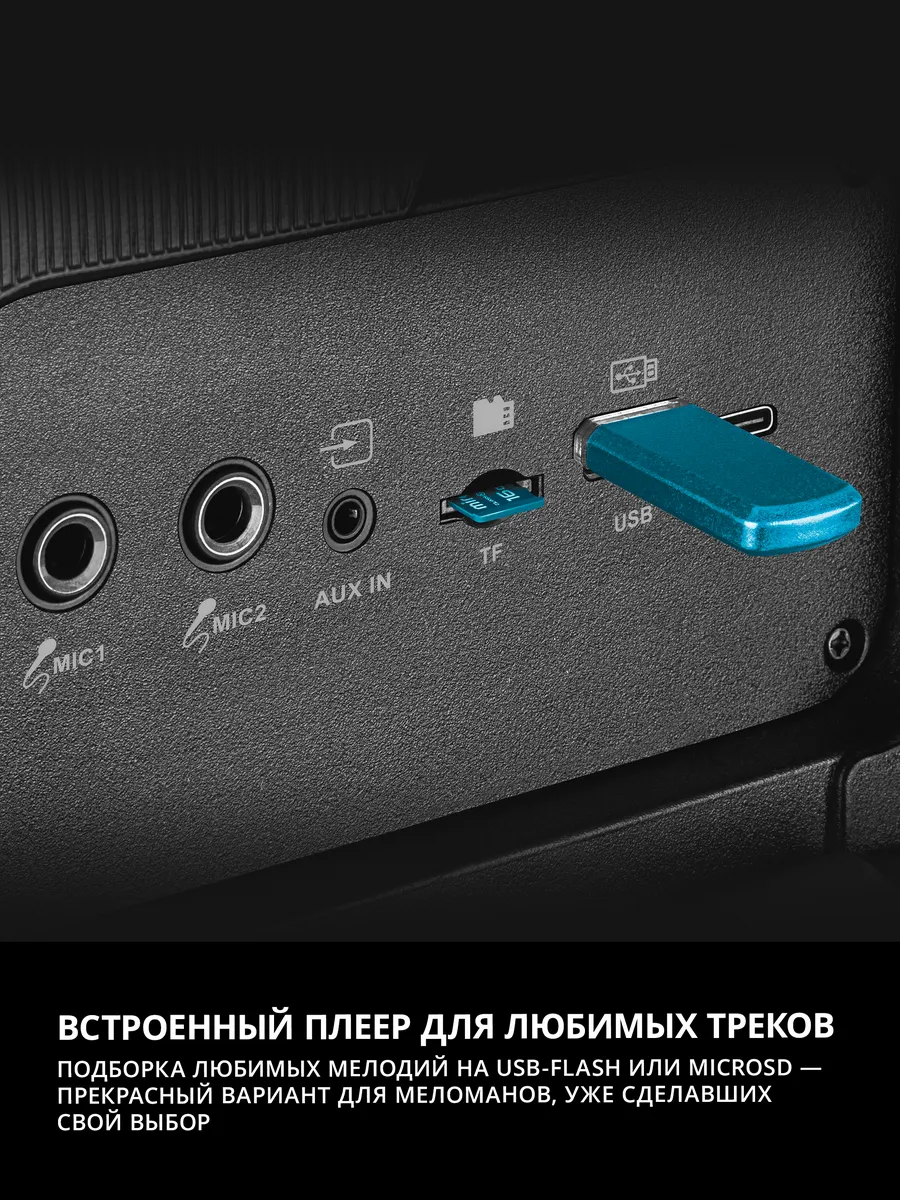 Два микрофонных входа позволяют спеть любимые песни дуэтом со своими друзьями и близкими.