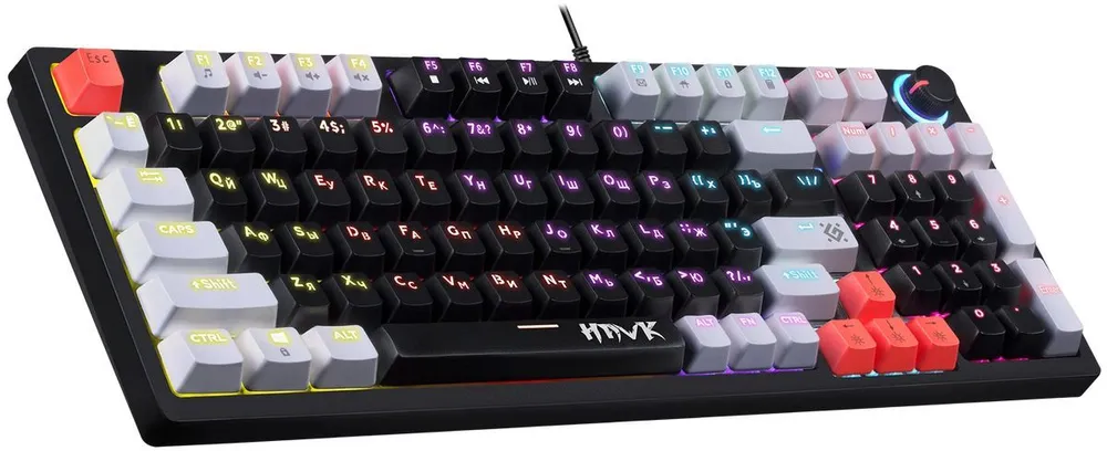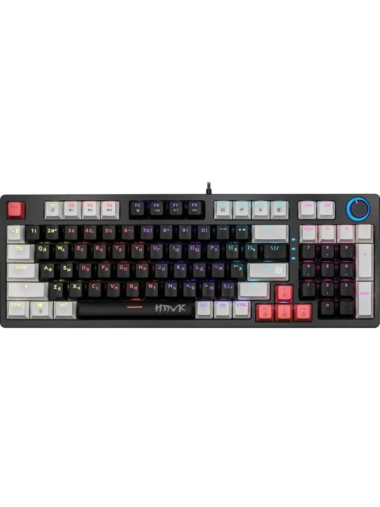 Клавиатура Defender Hawk GK-418 [45419] подключается к компьютеру по кабелю с интерфейсом USB Type-A. Разноцветная подсветка гарантирует удобное управление при разных условиях освещенности. Кнопка-регулятор позволяет управлять громкостью и подсветкой. На основании клавиатуры расположены ножки для настройки угла наклона.
