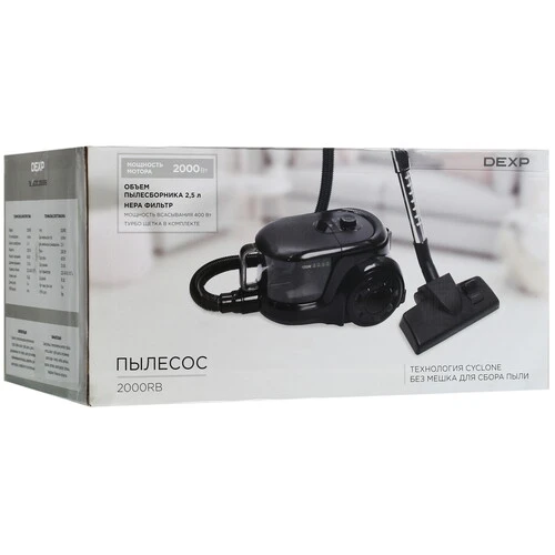 Пылесос DEXP 2000RB благодаря мощности всасывания 400 Вт позволяет тщательно собирать пыль, крошки, волосы, шерсть и другой мусор с разных напольных покрытий. Он поставляется в комплекте с турбощеткой, комбинированной насадкой пол/ковер, насадками для мебели и труднодоступных зон. Съемный пластиковый контейнер емкостью 2.5 л удобно очищается после уборки. Фильтр HEPA задерживает пыль и аллергены. Металлическая телескопическая рукоятка регулируется по длине. Поворотный механизм позволяет плавно настраивать мощность всасывания. Ручка и колеса гарантируют простое перемещение пылесоса DEXP 2000RB. Технология защиты от перегрева отключает прибор при критической температуре