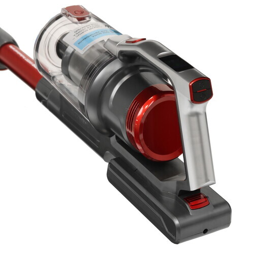 Модель оснащена прозрачным пылесборником объемом 0.8 литра, который легко опустошается нажатием кнопки. НЕРА-фильтр эффективно задерживает до 99% пыли, бактерий и аллергенов. В комплекте идут насадка 2 в 1 и турбощетка для пола. На одном заряде пылесос может работать автономно до 42 минут.