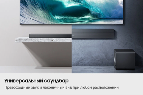 Подключение по Wi-Fi или Bluetooth позволяет синхронизировать саундбар с телевизором Samsung без проводов. Технология HDMI eARC передает высококачественное трехмерное аудио без потерь. Наслаждайтесь мощным звуком и идеальной синхронизацией звука и изображения, погружаясь в свои любимые фильмы, сериалы и игры.