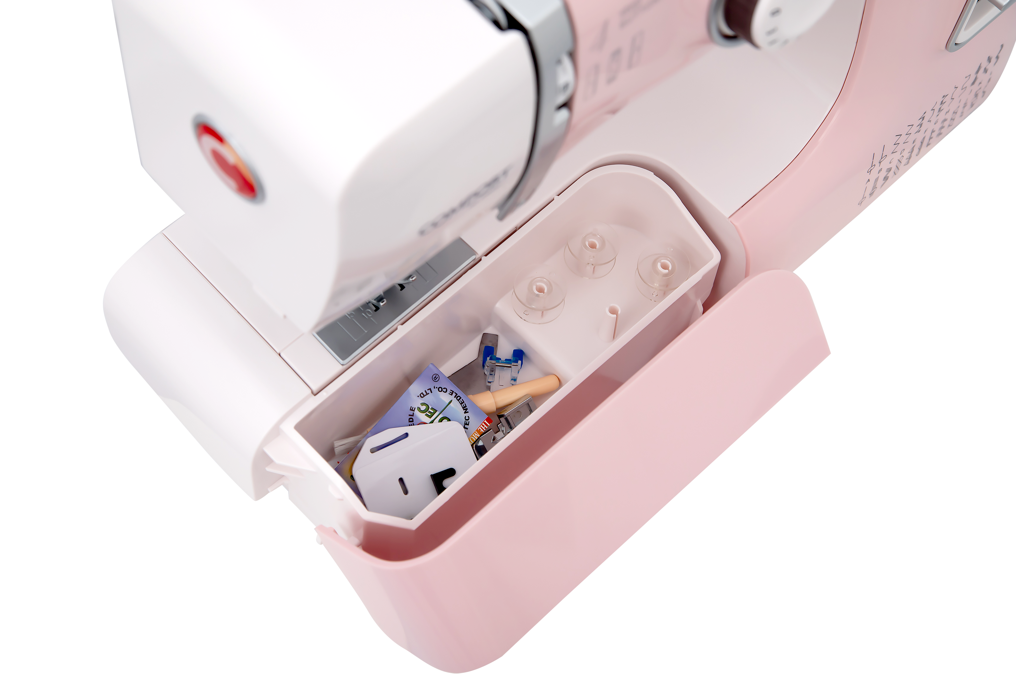 Швейная машина Comfort 1060 мощностью 100 Вт — идеальный выбор профессионалов! Мощная конструкция с металлической рамой выдерживает интенсивные нагрузки, сохраняя точность пошива. Три светодиодных светильника обеспечивают идеальное освещение рабочей зоны. Эргономичный корпус снижает вибрацию, а дополнительная укрепляющая пластина гарантирует надежность конструкции. Вдохновляющий дизайн в стильном розово-металличесом исполнении подчеркнет индивидуальность каждого мастера!