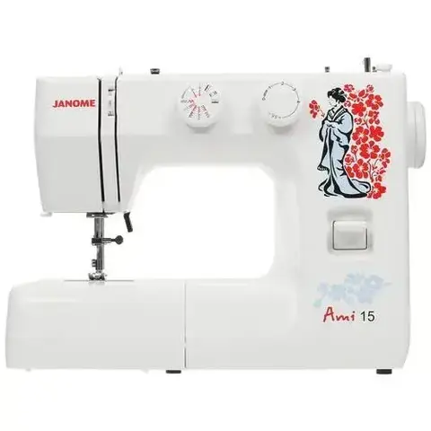 Швейная машина JANOME Ami 15 — это надёжное устройство от известного производителя, которое позволит вам самостоятельно выполнять ремонт и пошив различных текстильных изделий. Модель относится к типу электромеханических швейных машин. Её корпус выполнен в классическом белом цвете, а механизм оснащён вертикальным качающимся челноком. Швейная машина JANOME Ami 15 обладает широким набором функций и возможностей для различных швейных операций. Лапка может подниматься на максимальную высоту до 14 мм, что позволяет шить одежду из плотной и толстой ткани, а также из сложенных в несколько раз материалов. Длина и ширина стежка регулируются до 4 и 5 мм соответственно. Вы также можете выбрать одно из 16 швейных действий, включая шитье в нескольких направлениях и использование двойной иглы.