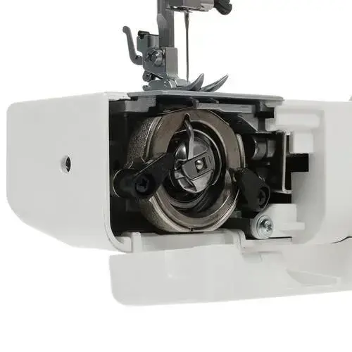 Максимальная скорость шитья составляет 400 стежков в минуту, что делает работу быстрой и эффективной. Светодиодная подсветка обеспечивает яркое освещение рабочей зоны, что особенно полезно при работе в условиях недостаточного освещения.