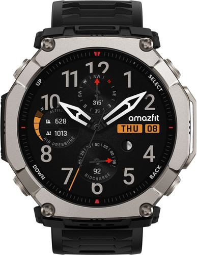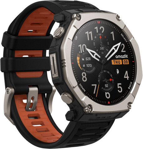 Смарт-часы Amazfit T-Rex Ultra 2 имеют титановый корпус и защитное сапфировое стекло. Их водонепроницаемость достигает 10 Бар, что позволяет погружаться на глубину до 45 метров. Экран с диагональю 1.5 дюйма и AMOLED матрицей обладает яркостью 3000 кд/м², обеспечивая чёткое изображение при любом уровне освещённости.