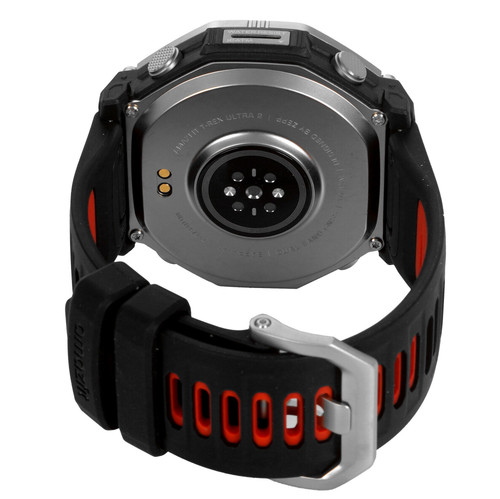 Часы Amazfit T-Rex Ultra 2 подключаются к устройствам через Bluetooth. Датчик BioTracker 6.0 в сочетании с алгоритмами PulsePrecision и Restore IQ позволяет точно отслеживать пульс, уровень кислорода в крови, показатели стресса и качество сна. Для пользователей доступно 160 различных спортивных режимов. Поддержка шести спутниковых систем и возможность построения карт с учётом рельефа местности обеспечивают быструю и точную навигацию. Встроенный двухцветный фонарик пригодится для освещения в тёмное время суток. Одного заряда аккумулятора ёмкостью 870 мАч хватает на до 30 дней работы часов при активном использовании.