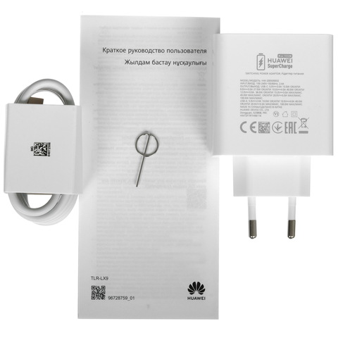 документация, зарядное устройство, защитная пленка (наклеена на экран), кабель USB Type-C, скрепка для извлечения слота SIM-карты / карты памяти, чехол