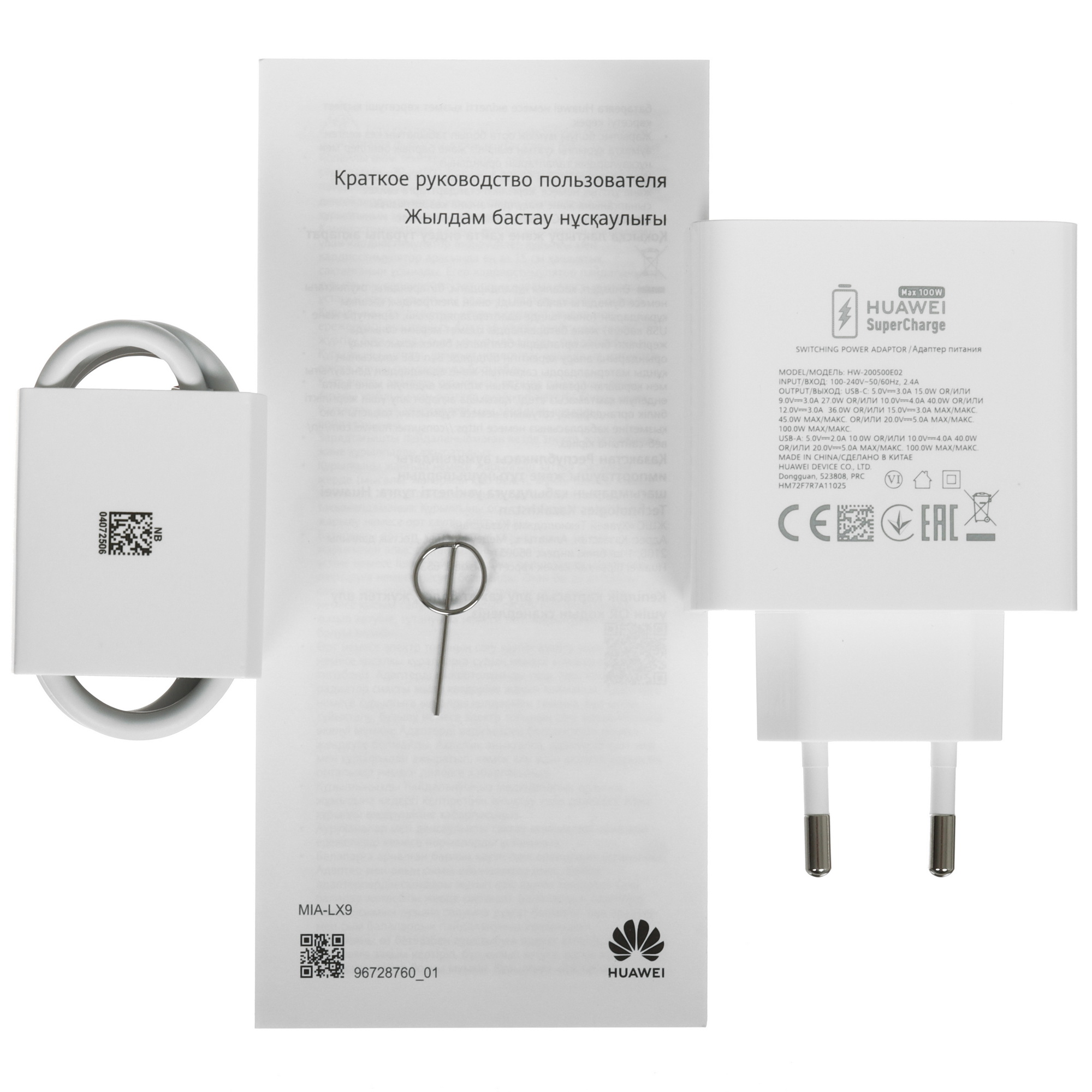 документация, зарядное устройство, защитная пленка (наклеена на экран), кабель USB Type-C, скрепка для извлечения слота SIM-карты / карты памяти, чехол