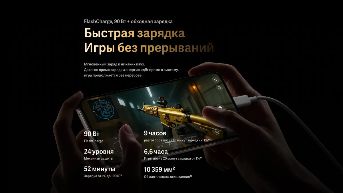 Аккумулятор емкостью 6500 мАч позволяет долго работать без подзарядки, а поддержка быстрой зарядки быстро восполняет заряд. Смартфон имеет 8 ГБ оперативной и 256 ГБ встроенной памяти. Это обеспечивает высокую производительность и много места для хранения данных.