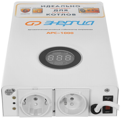 Релейный стабилизатор напряжения Энергия APC-1000 обеспечивает безопасную работу электрооборудования различного назначения. Он рассчитан на подключение нагрузки с суммарной потребляемой мощностью до 1000 Вт. Входное и выходное напряжение контролируется с помощью дисплея на лицевой панели устройства. Для подключения нагрузки предусмотрены две евророзетки. Возможна интеграция сетевых фильтров, разветвителей и удлинителей.