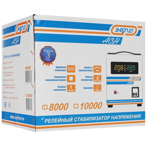 Стабилизатор напряжения Энергия АСН-8000 [140 В - 260 В, 8000 ВА, 8 кВт, 50 Гц] - купить в Донецке в ДНР