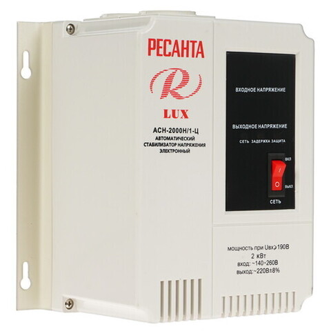 Стабилизатор напряжения Ресанта АСН- 2000 Н/1-Ц Lux [140 В - 260 В, 2000 ВА, 2 кВт, 50 Гц, розеток - 2] - купить в Донецке в ДНР