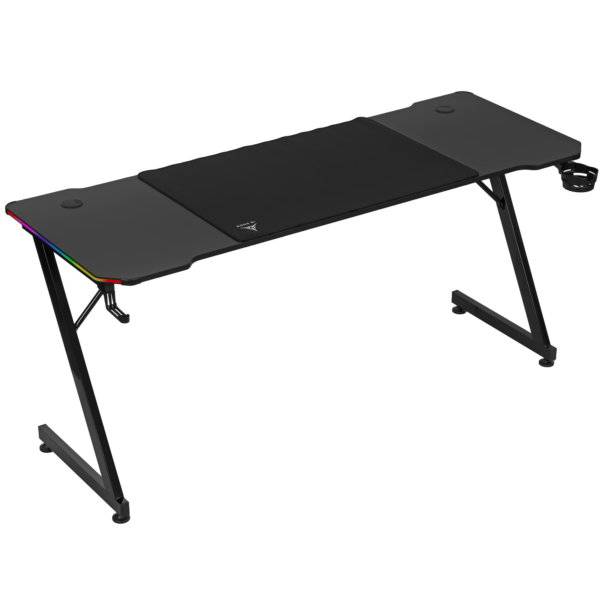 Компьютерный стол ZONE 51 TRINE 160 RGB выполнен из прочного стального основания и столешницы из МДФ. Пластиковое покрытие облегчает уход за поверхностью, делая её устойчивой к загрязнениям и влаге. Столешница шириной 160 см предоставляет достаточно места для размещения ноутбука, моноблока и всех необходимых для работы или учебы аксессуаров. Регулируемые ножки стола позволяют адаптировать его высоту под неровный пол.
