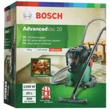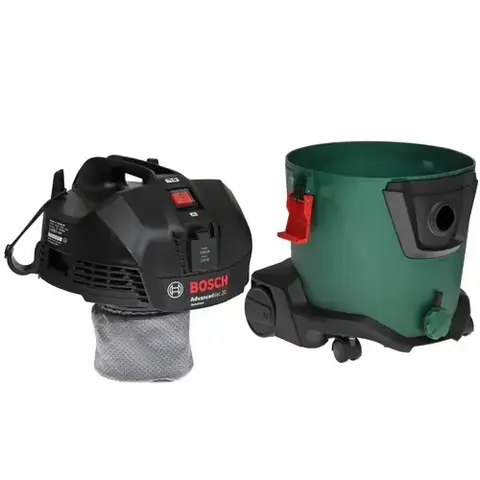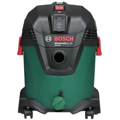 Строительный пылесос Bosch AdvancedVac 20 мощностью 1200 Вт оснащен контейнером объемом 20 л для сбора мусора. Возможна совместная эксплуатация модели с различными электроинструментами. Вкладыш с резиновой кромкой расширяет сферу использования насадок, позволяя устранить пролитую жидкость.