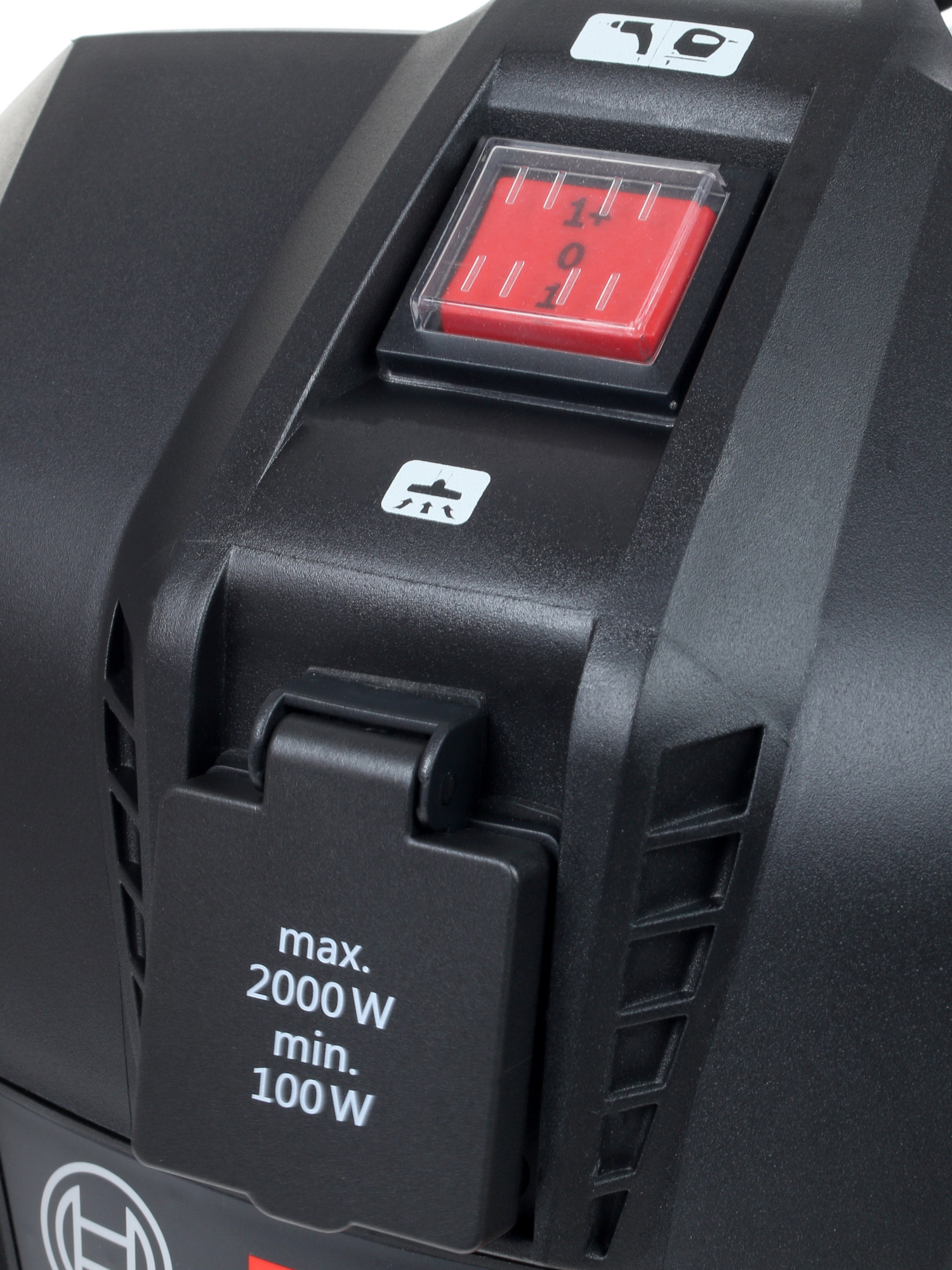 Мусор собирается в большом контейнере объемом 20 литров, что позволяет реже проводить его очистку. Также поддерживается возможность подключения электрического инструмента, при этом пылесос будет автоматически включаться и выключаться вместе с ним.
