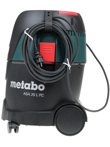 Для сбора мелких строительных частиц и других загрязнений пылесос Metabo ASA 25 L PC оснащен вместительным 25-литровым пылесборником. Когда бак заполняется, прибор автоматически отключается, сигнализируя о необходимости его очистки. При подключении к шлифовальной машине или рубанку пылесос удаляет отходы из рабочей зоны, предотвращая их распространение по помещению.