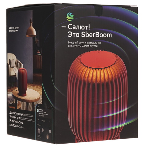 Виртуальный ассистент Салют может не только включать музыкальные композиции, но и вести диалог, рассказывать сказки и контролировать умные устройства. Четыре встроенных микрофона обеспечивают чёткое восприятие голоса. При обнаружении посторонних звуков детектор шума отправляет уведомление на смартфон. Колонка поддерживает беспроводное подключение к совместимой технике через Bluetooth и Wi-Fi. Устройство выполнено в красном цвете и имеет световую индикацию.