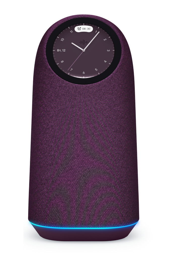 Дизайн колонки разработан известным дизайнером Каримом Рашидом, чьи работы можно увидеть в лучших музеях мира. Сенсорный экран позволяет управлять музыкой в удобном плеере, просматривать погоду, функции Маруси и данные умного дома. Циферблат часов можно легко настроить под интерьер или настроение одним движением.