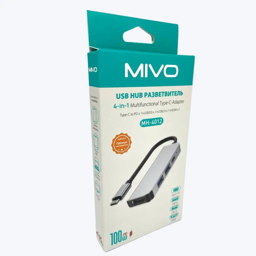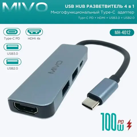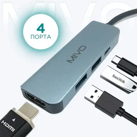 Разветвитель Mivo MH-4012 для компьютера расширяет возможности ноутбука. Компактный гаджет с двумя USB-портами, Type-C и HDMI расположен на боковой стороне. Устройство подключается к смартфонам, фотоаппаратам, накопителям и клавиатуре. Изготовлен из прочного пластика и алюминиевого сплава, он устойчив к повреждениям и сохраняет внешний вид. Разветвитель передаёт данные быстро и без перебоев. Не требует дополнительного питания, а драйверы устанавливаются автоматически.