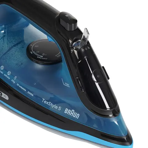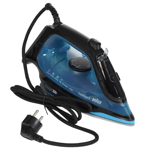 Синий утюг Braun TexStyle 5 SI5256 BL обладает мощностью 2600 Вт и подходит для разглаживания любых тканей, включая самые грубые. Если ткань сильно измята, можно воспользоваться функцией парового удара, который выдает 210 г пара в минуту. В обычном режиме подача пара составляет 50 г/мин.