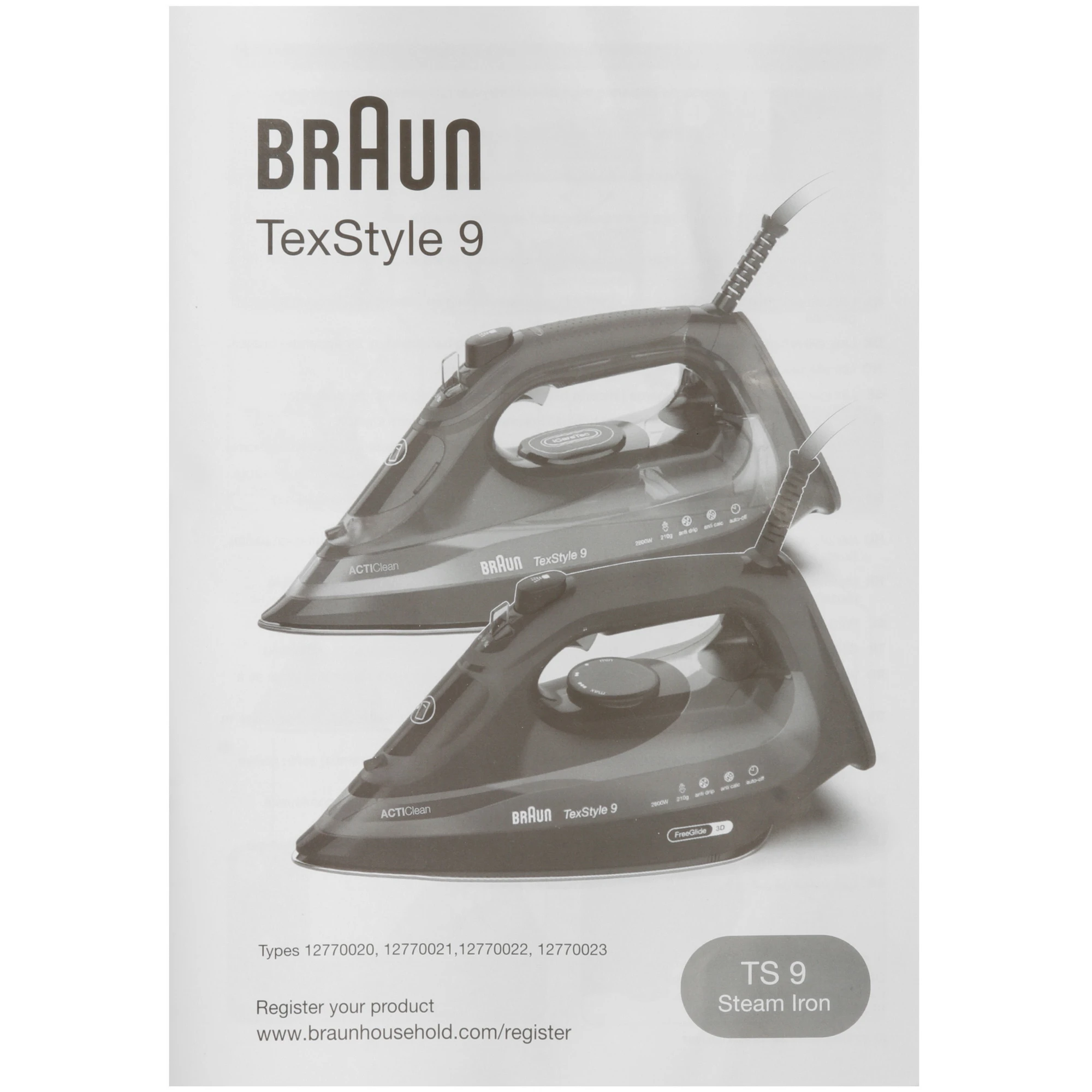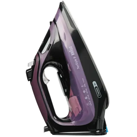 Утюг Braun TexStyle 9 SI9661VI автоматически выключается через 8 минут в вертикальном положении или через минуту в горизонтальном при бездействии.