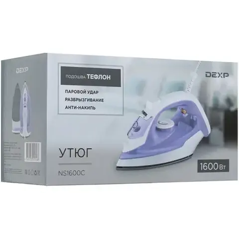 Утюг DEXP NS1600C мощностью 1600 Вт станет надежным помощником в повседневном отглаживании вещей. Тефлоновая подошва с антипригарным покрытием легко скользит по любым тканям. В функционале модели сочетаются опции парового удара и разбрызгивания воды. Это позволяет справиться с самыми «капризными» и пересушенными материалами. Регулярная подача пара осуществляется с интенсивностью 15 г/мин. Сетевой шнур модели длиной 1.9 м обладает шаровым креплением с возможностью вращения вокруг своей оси, не запутываясь. Это позволяет пользователю удобно устроиться за гладильной доской с утюгом DEXP NS1600C. Небольшой вес прибора (720 г) делает процесс комфортным и неутомительным для рук и плеч. Модель защищена от образования накипи, что упрощает уход за ней.