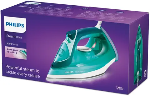 Специальная форма носика Triple Precision позволяет удобно разглаживать труднодоступные места. Система «Капля-стоп» предотвращает появление пятен и капель на одежде. Утюг оснащен резервуаром для воды объемом 0,3 л и простым механическим управлением. Встроенный слайдер предотвращает образование накипи и известкового налета, что продлевает срок службы прибора. В режиме ожидания утюг автоматически отключается через 30 секунд для безопасности.