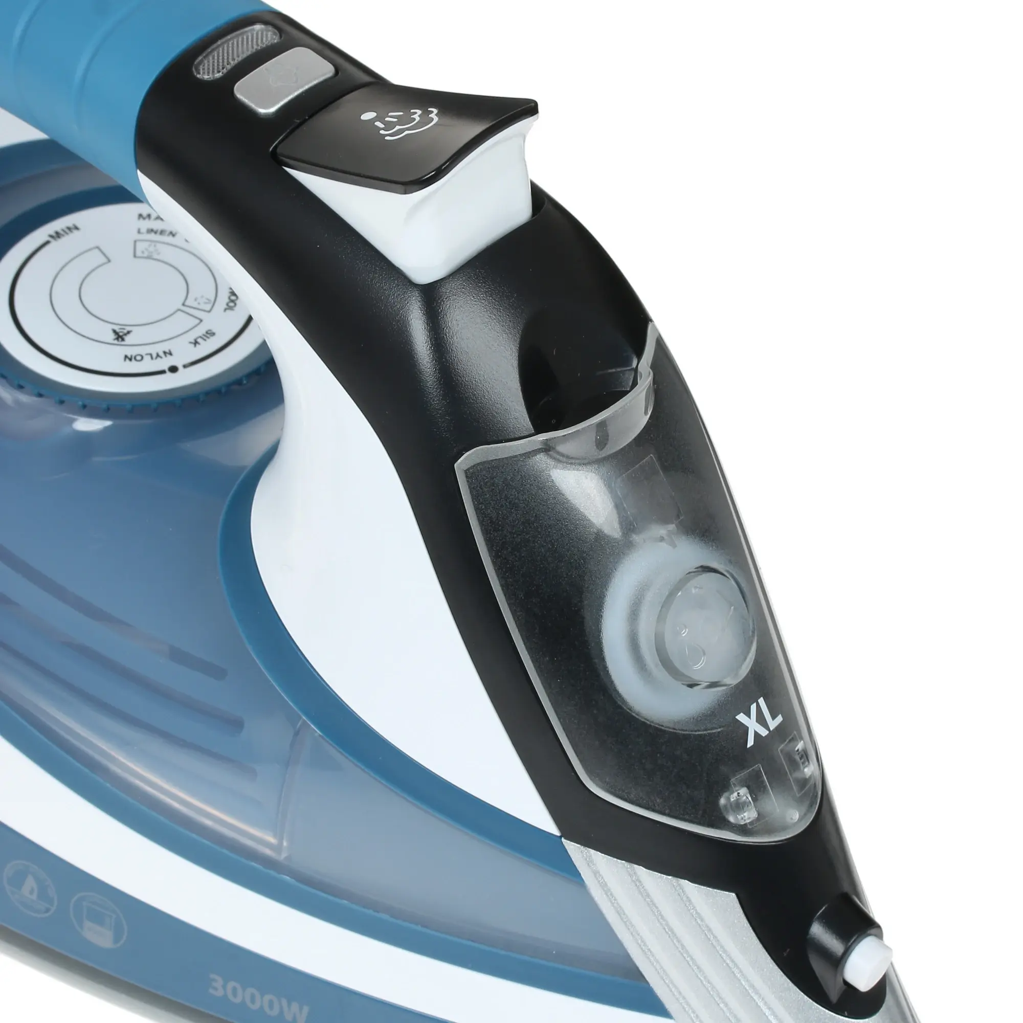 Утюг оснащен резервуаром для воды объемом 450 мл, который можно использовать для разбрызгивания на ткань или подачи пара. Он также подходит для вертикального отпаривания. Для особо сложных тканей предусмотрен паровой удар мощностью 260 г/мин. Противокапельная система предотвращает вытекание воды из резервуара через отверстия в подошве. Специальные технологии защищают внутренние детали утюга от накипи.