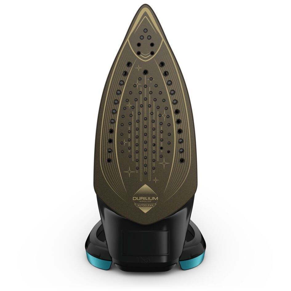 Металлокерамическая подошва Durilium Airglide Autoclean обеспечивает плавное скольжение и не оставляет блестящих следов на одежде. Шаровое крепление шнура предотвращает его спутывание, а система очистки от накипи сохраняет эстетичный вид ткани. Тонкий носик позволяет добраться до труднодоступных участков. Световой индикатор сообщает о готовности прибора к работе.