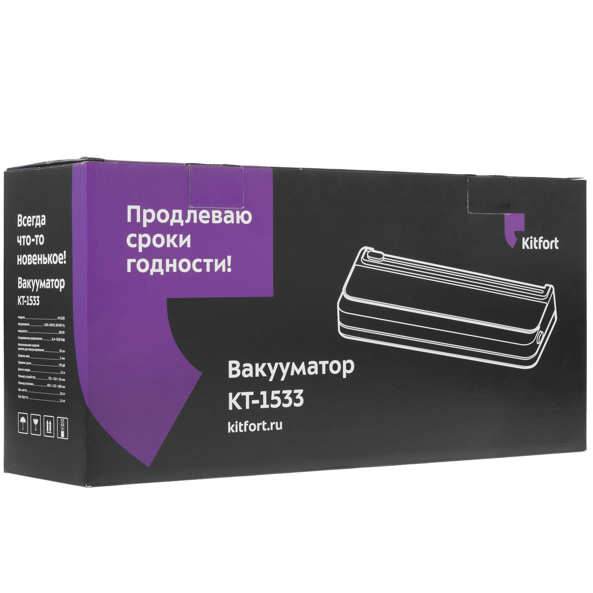 Серебристый вакуумный упаковщик KITFORT КТ-1533 — стильный помощник на вашей кухне! Сенсорное управление и удобная индикация делают его использование простым и приятным. Подходит для пакетов шириной до 29 см, продлевая свежесть ваших любимых продуктов и блюд! Мощность всего 110 Вт, безопасен благодаря встроенной защите от тока. Оснащён удобным резаком и пятью специализированными режимами для разных типов продуктов. Идеально сохраняет вкус и аромат еды!