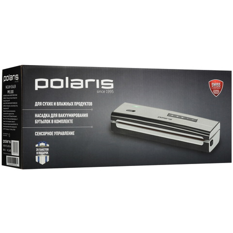 Серебристый вакуумный упаковщик Polaris PVS 1303 с удобным сенсорным управлением и понятной индикацией режимов — ваш надежный помощник! Серия тестов показала эффективность упаковки, увеличивающую сроки сохранности продуктов и предотвращающую смешивание ароматов. Подходит для рулонов и пакетов (шириной до 29,5см). Включен набор аксессуаров: нож, насадка для бутылок, шланг, 20 пакетов + 5 программ для разных типов пищи. Работает от сети 220–240V при мощности всего 130Вт.