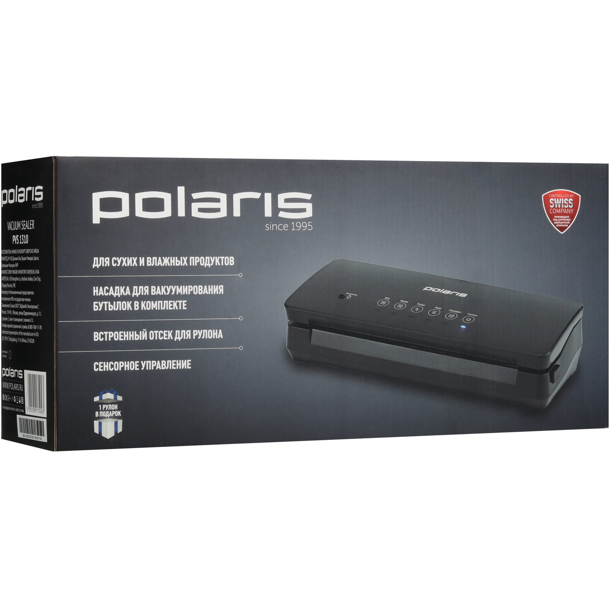 Черный вакуумный упаковщик Polaris PVS 1310 оснащен сенсорной панелью управления и интуитивно-понятной индикацией шести режимов работы. Подходит для пакетов и рулонов шириной до 29,5 см, эффективно сохраняет свежесть продуктов и предотвращает смешивание ароматов. Работая от обычной розетки (220–240 В), он экономичен – всего лишь 100 Вт мощности! К устройству прилагаются нож для точного разрезания плёнки, насадка для бутылок, шланг и рулон плёнки размером 28х500 см.