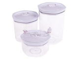 3 вакуумных контейнера с крышками, 8 пакетов 28х40 см, 10 пакетов 22х30 см, вакуумный шланг, документация, книга рецептов