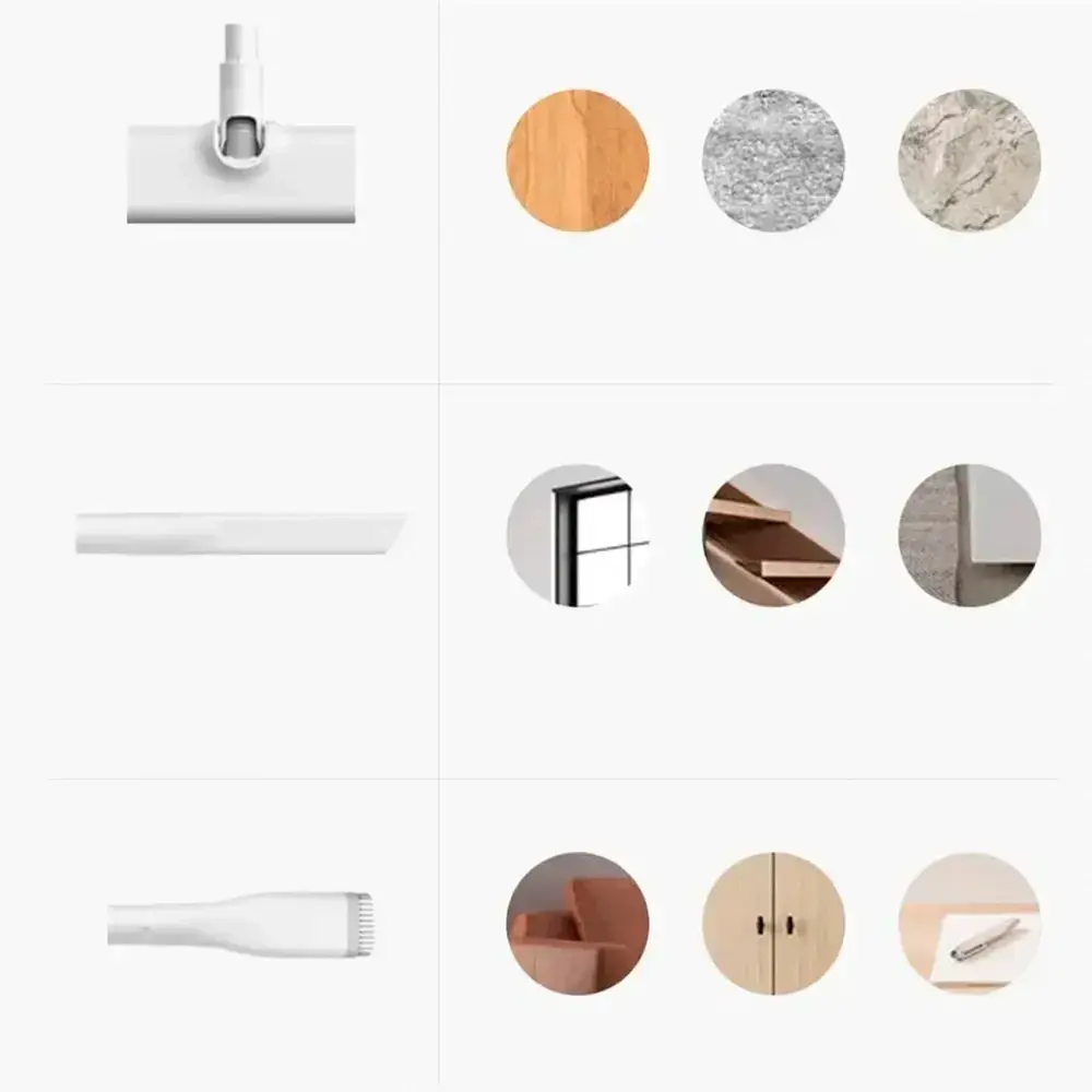 Xiaomi Mijia Vacuum Cleaner оснащен универсальной щеткой для напольных покрытий, насадкой для мебели и щелевой насадкой. Пылесос функционирует от электрической сети. Специальное крепление предоставляет возможность фиксации на стене.
