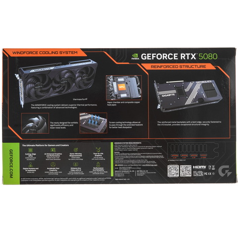 Видеокарта GIGABYTE GeForce RTX 5080 WINDFORCE OC SFF с оформлением в черном цвете и мощными техническими характеристиками. Благодаря архитектуре NVIDIA Blackwell и скоростной памяти стандаВидеокарта GIGABYTE GeForce RTX 5080 WINDFORCE OC SFF представлена в стильном черном дизайне и обладает впечатляющими техническими характеристиками. Благодаря современной архитектуре NVIDIA Blackwell и высокоскоростной памяти стандарта GDDR7 объемом 16 ГБ, она обеспечивает выдающуюся производительность в играх с высокими графическими настройками. Процессор видеокарты работает на тактовой частоте до 2670 МГц в режиме разгона.