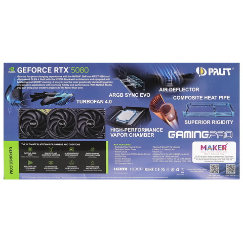 Серия видеокарт Palit GamingPro отличается великолепным дизайном и впечатляющей производительностью. Благодаря передовым технологиям охлаждения, таким как TurboFan 4.0, воздушный дефлектор, композитные тепловые трубки и испарительная камера, эти устройства обеспечивают идеальные тепловые характеристики. Разработанные для максимального удовольствия, видеокарты GamingPro идеально подходят для геймеров, создателей контента и энтузиастов искусственного интеллекта.
