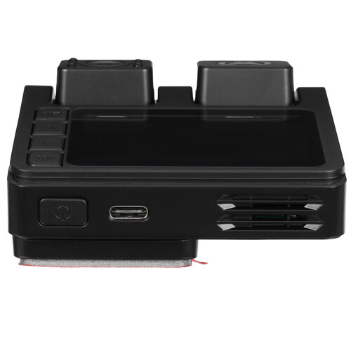 Видеорегистратор DEXP Inside оснащен двумя камерами на поворотном механизме, что позволяет одновременно фиксировать происходящее на дороге и внутри автомобиля. Оба датчика имеют разрешение 2 Мп и записывают видео в формате FullHD. Широкое поле зрения в 150 градусов обеспечивает охват всех деталей. Устройство поддерживает циклическую и непрерывную запись на microSD-карту объемом до 64 ГБ.