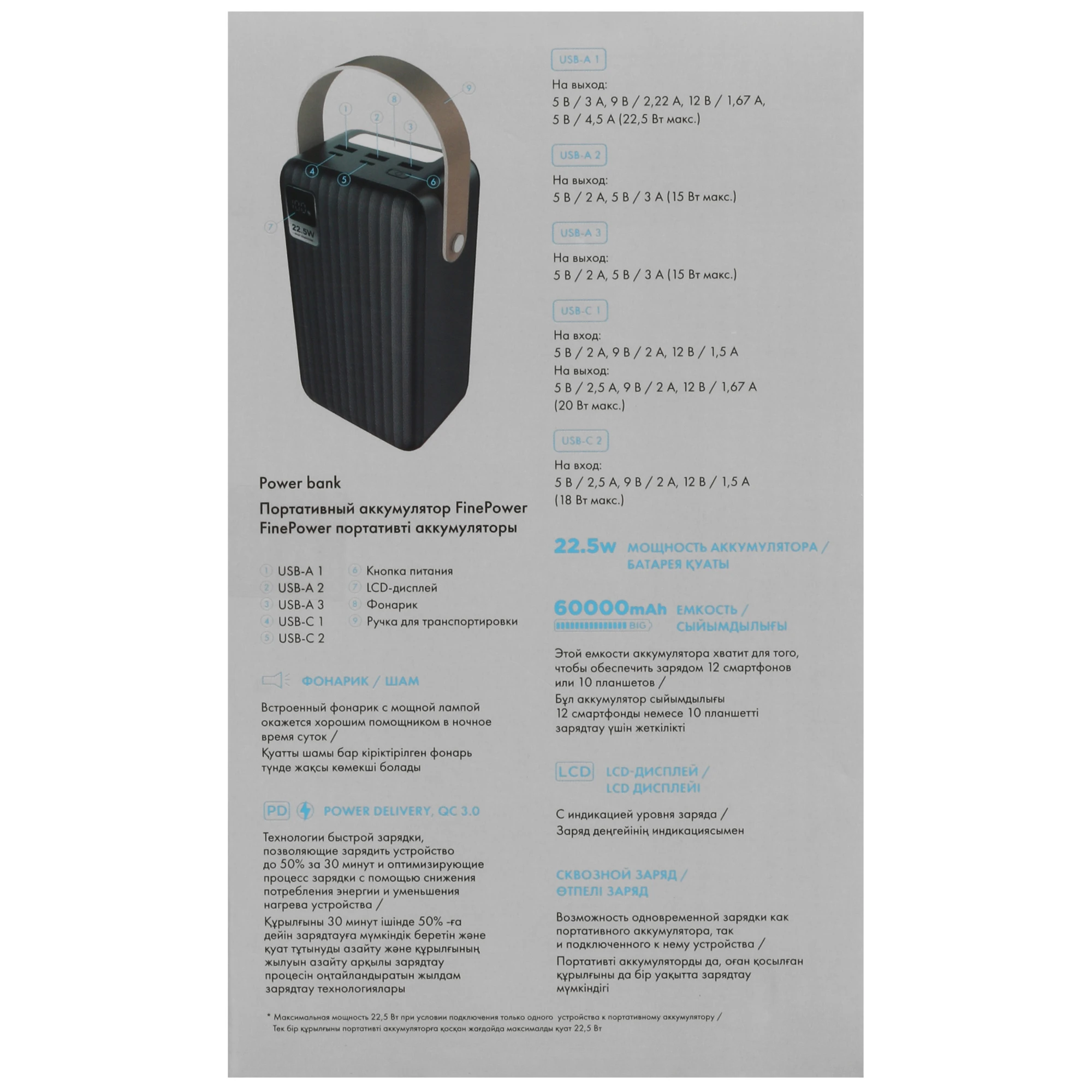 Внешний аккумулятор Power bank FinePower Giant 60 22.5W 60000 mAh - купить в Донецке ДНР