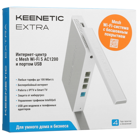 Маршрутизатор Keenetic Extra KN-1714 оснащен двухдиапазонным Wi-Fi 5 с классом AC1200, четырехпортовым Smart-коммутатором и USB 2.0 портом для подключения внешних модемов LTE/4G. Он универсален для дома и офиса, подходит как для городской застройки, так и для загородных условий благодаря поддержке множества источников интернета. Операционная система KeeneticOS позволяет приоритизировать и резервировать подключения, предоставляет облачный удаленный доступ KeenDNS и выполняет функции шлюза-контроллера для Mesh Wi-Fi-системы. Идеальными ретрансляторами для него являются любые 100-мегабитные модели, особенно двухдиапазонные, такие как Air, Explorer и Buddy 5.