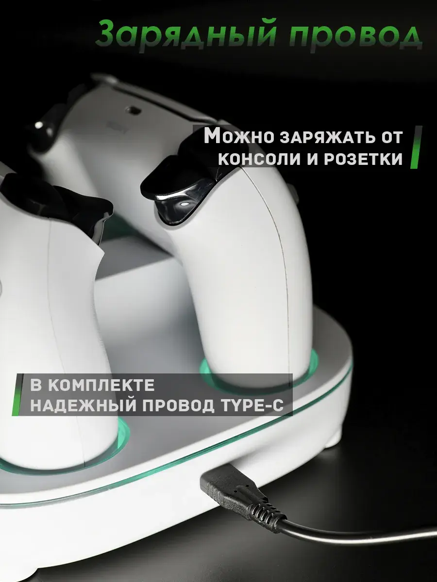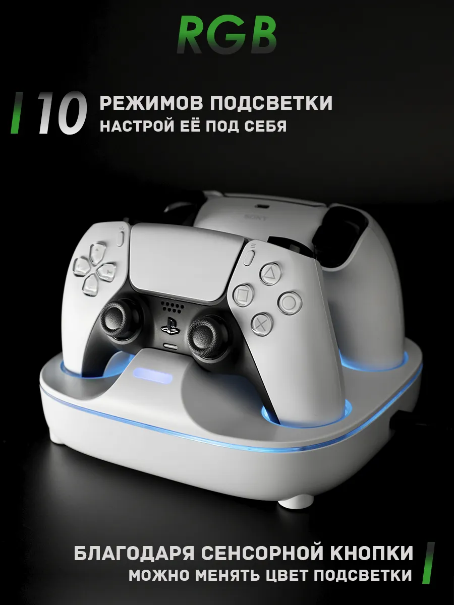 Зарядная док-станция для джойстиков PlayStation 5 — это стильный и практичный аксессуар для геймеров. Она компактна и удобна, идеально подходит для зарядки двух геймпадов одновременно. Устройство оснащено регулируемой RGB-подсветкой, которая добавит ярких красок в игровую зону. Док-станция поставляется с проводом Type-C, что делает её использование ещё более удобным. Не упустите возможность улучшить свои игровые впечатления с помощью этого полезного гаджета!