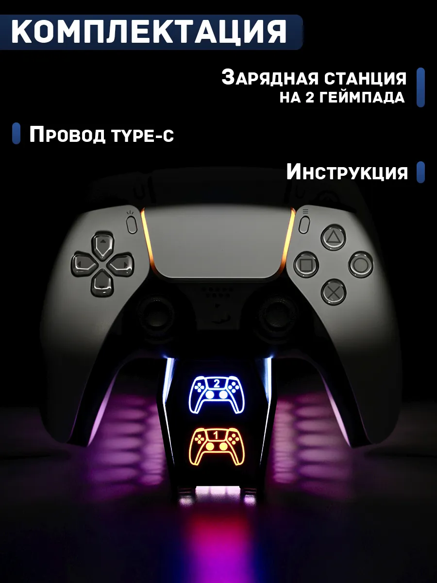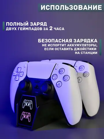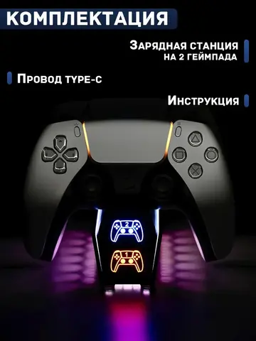 Зарядная док-станция для джойстиков PlayStation 5 — это идеальное решение для тех, кто ценит удобство и стиль. Компактная и элегантная, она станет незаменимым аксессуаром для всех владельцев PS5. Впечатляющий дизайн с регулируемой RGB-подсветкой украсит любую игровую зону. Станция позволяет одновременно заряжать два геймпада, что особенно удобно во время долгих игровых сессий. В комплекте идет провод type-c. Не упустите возможность добавить этот гаджет в свою коллекцию и наслаждаться играми с максимальной отдачей!
