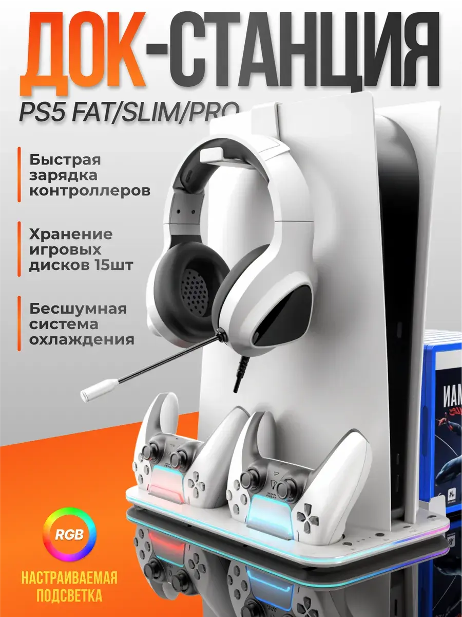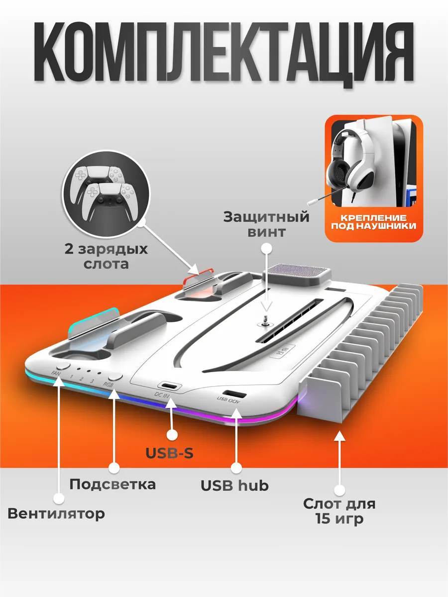 зарядная станция для Playstation 5; Держатель для наушников; Хранилище для дисков; usb кабель питания