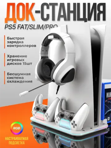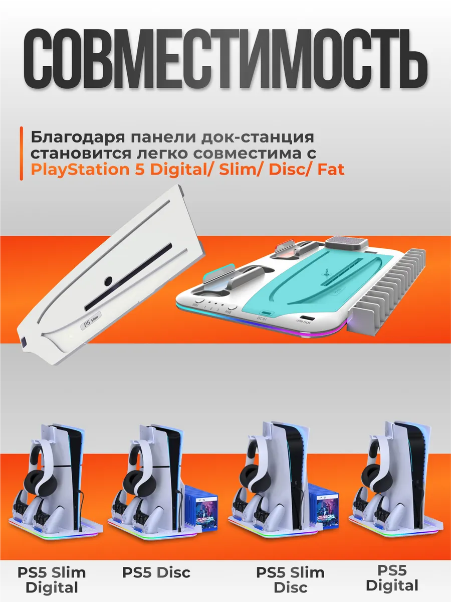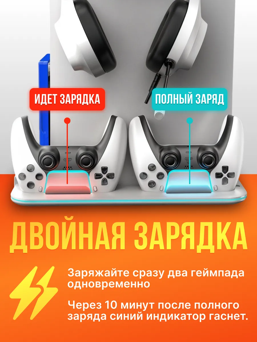 Зарядная станция для PlayStation 5, подставка для PlayStation 5 Slim и зарядные устройства для джойстиков — идеальное решение для хранения и зарядки контроллеров. Компактная и стильная док-станция не только организует пространство, но и позволяет одновременно заряжать два контроллера, экономя ваше время. Эргономичный дизайн гармонично впишется в ваш игровой уголок, а прочная конструкция обеспечит надежное хранение устройств. Вы больше не будете тратить время на поиски зарядного кабеля или беспокоиться о том, что контроллеры разрядятся в самый неподходящий момент. Просто разместите их на подставке, и они всегда будут готовы к игре.
