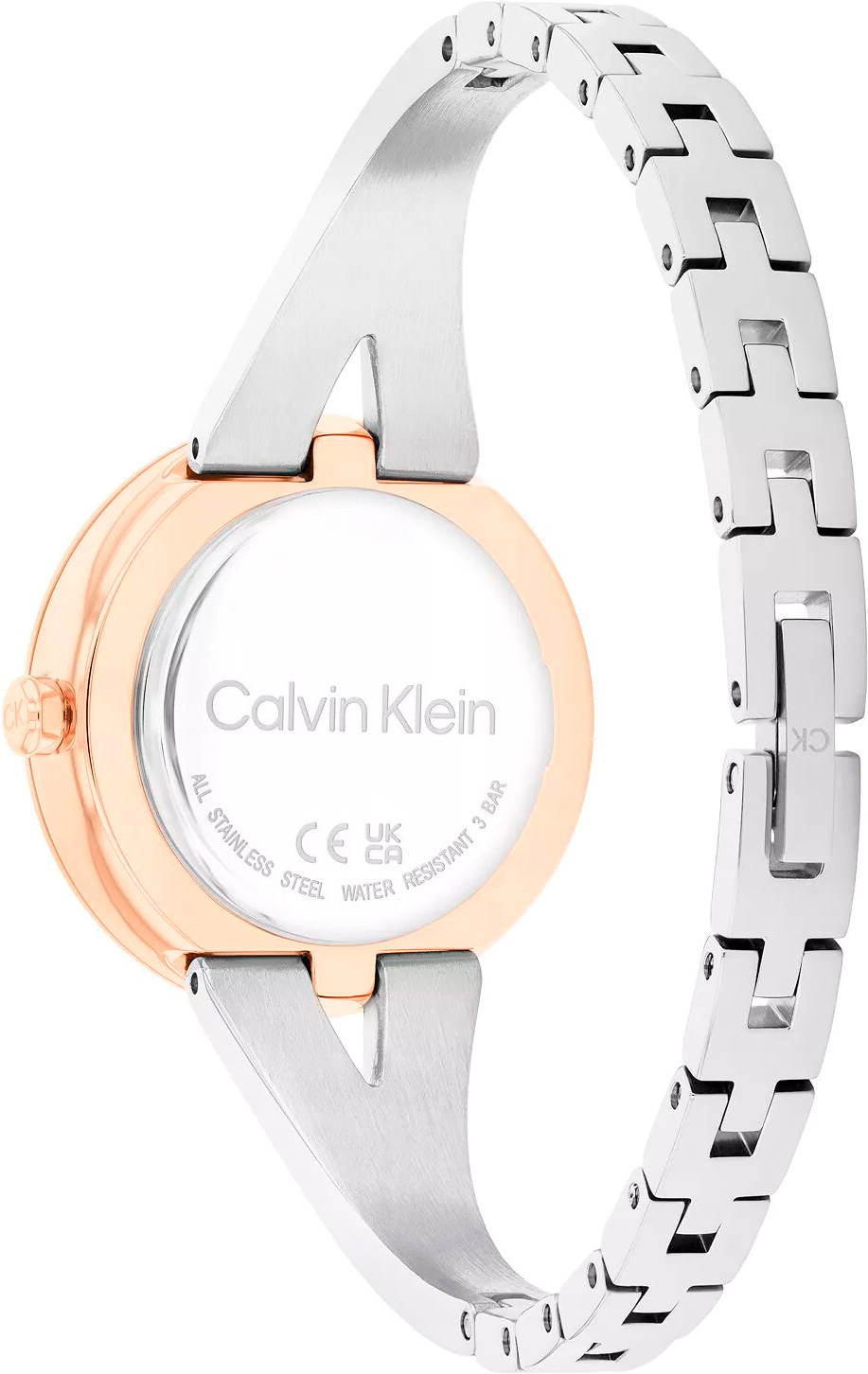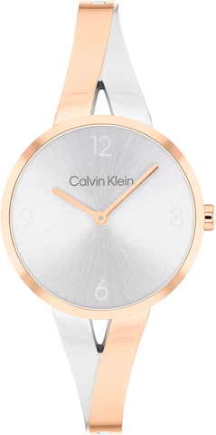 Изящные часы — это символ элегантности и утонченности, где каждая деталь подчеркивает безупречный вкус и чувство стиля их обладательницы. Женские кварцевые часы с полированным корпусом круглой формы из нержавеющей стали, покрытым розовым IP. Циферблат выполнен с использованием технологии Sunray (солнечные лучи) и украшен фирменным логотипом Calvin Klein. Он защищен минеральным стеклом. Метки в виде арабских цифр. Стрелки прямоугольные, в стиле Baton, секундная стрелка отсутствует. Заводная головка декорирована логотипом "CK". Браслет из стали с частичным розовым IP покрытием и ювелирной застежкой с логотипом бренда CK.